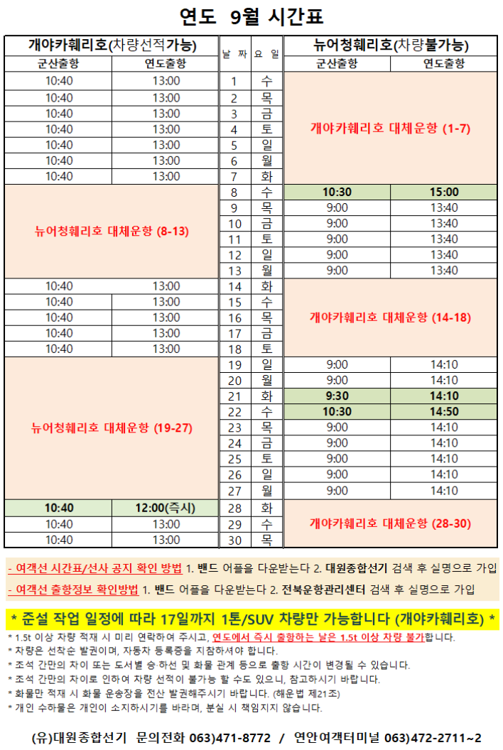 문화관광국 관광진흥과 에서 제작한 여객선 시간표 저작물은 "공공누리" 출처표시-상업적 이용금지-변경금지 조건에 따라 이용 할 수 있습니다.