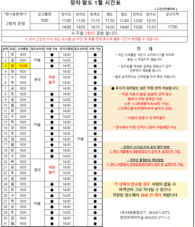 말도 1월 여객시간표
