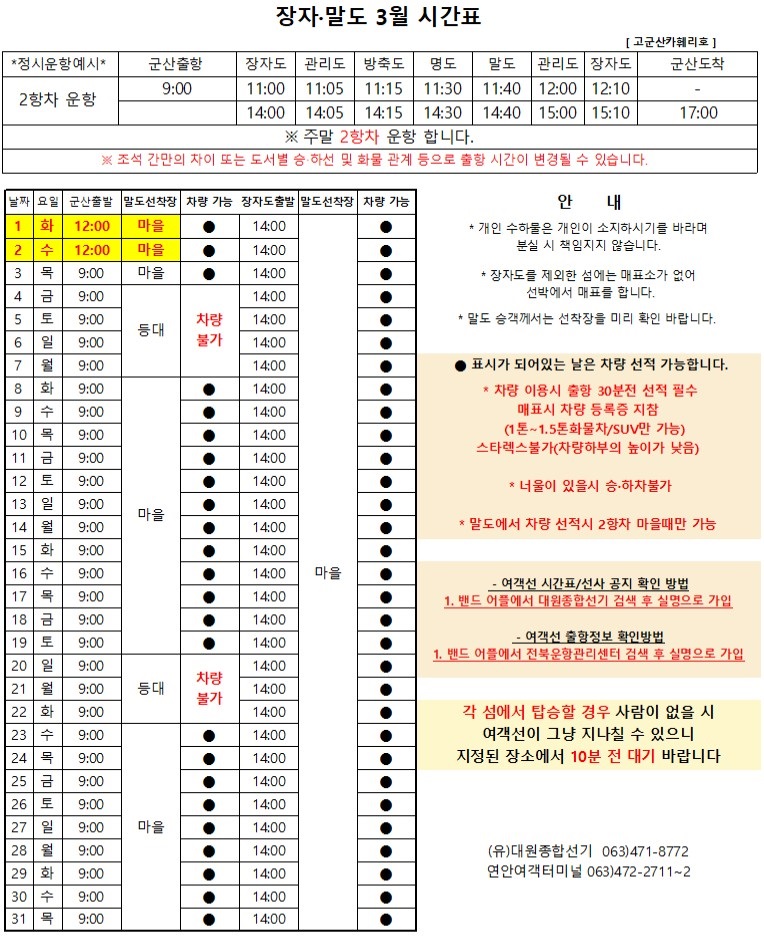 문화관광국 관광진흥과에서 제작한 여객선 시간표 저작물은 "공공누리" 출처표시-상업적 이용금지-변경금지 조건에 따라 이용 할 수 있습니다.