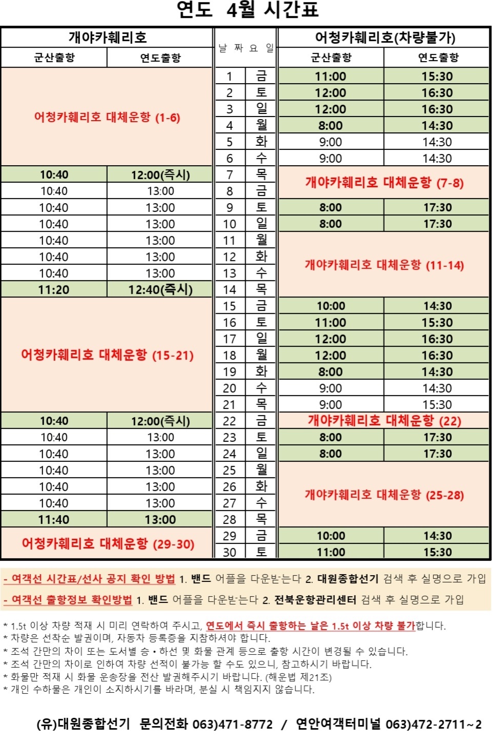 문화관광국 관광진흥과에서 제작한 여객선 시간표 저작물은 "공공누리" 출처표시-상업적 이용금지-변경금지 조건에 따라 이용 할 수 있습니다.