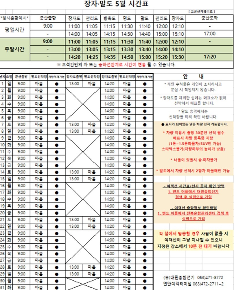 문화관광국 관광진흥과 에서 제작한 여객선 시간표 저작물은 "공공누리" 출처표시-상업적 이용금지-변경금지 조건에 따라 이용 할 수 있습니다.