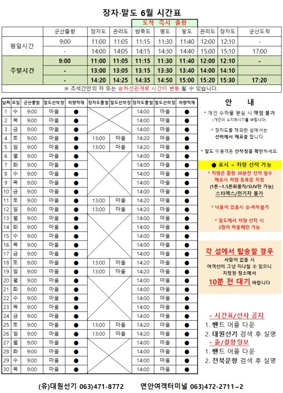 문화관광국 관광진흥과 에서 제작한 여객선 시간표 저작물은 "공공누리" 출처표시-상업적 이용금지-변경금지 조건에 따라 이용 할 수 있습니다.