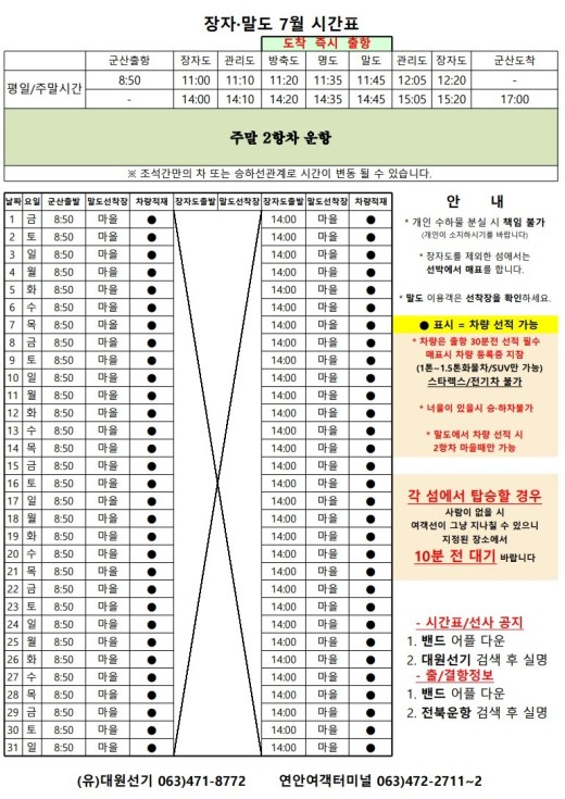어청도 7월 여객시간표