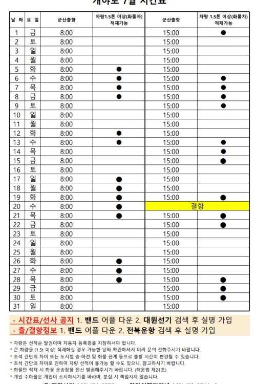 7월 개야도 여객시간표 알림