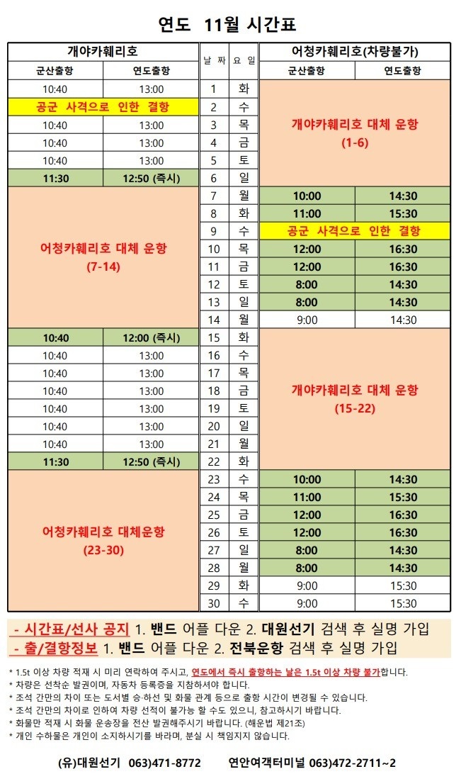 문화관광국 관광진흥과 에서 제작한 여객선 시간표 저작물은 "공공누리" 출처표시-상업적 이용금지-변경금지 조건에 따라 이용 할 수 있습니다.