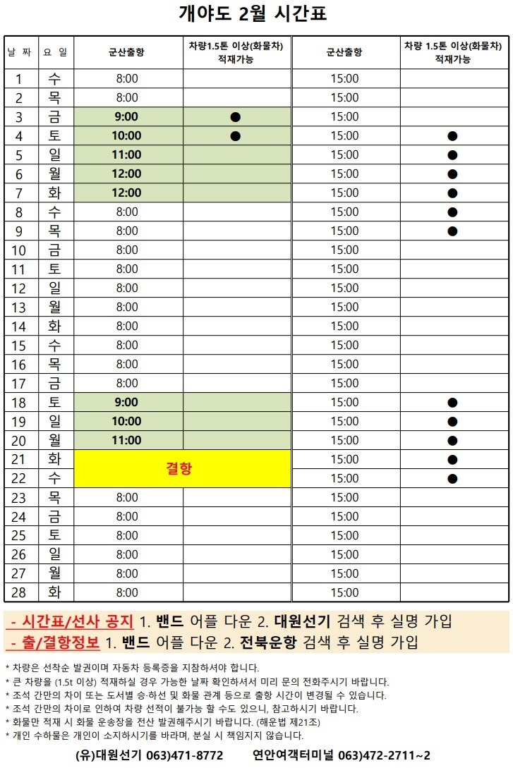 연도 2월 여객시간표