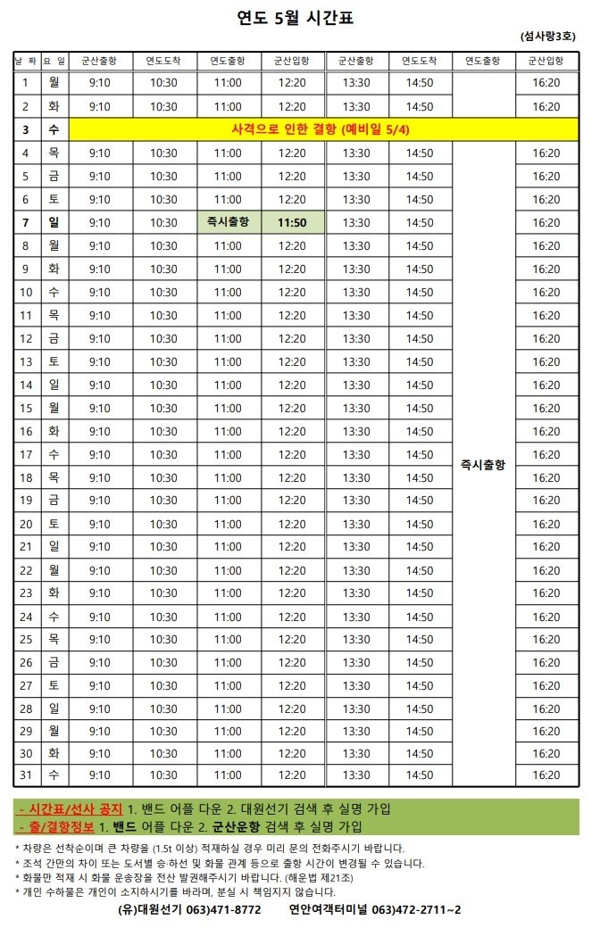 개야도 5월 여객시간표