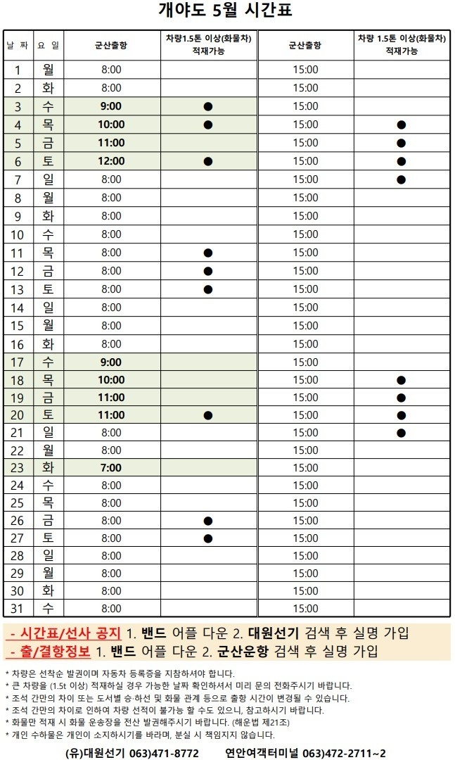 문화관광국 관광진흥과 에서 제작한 여객선 시간표 저작물은 "공공누리" 출처표시-상업적 이용금지-변경금지 조건에 따라 이용 할 수 있습니다.