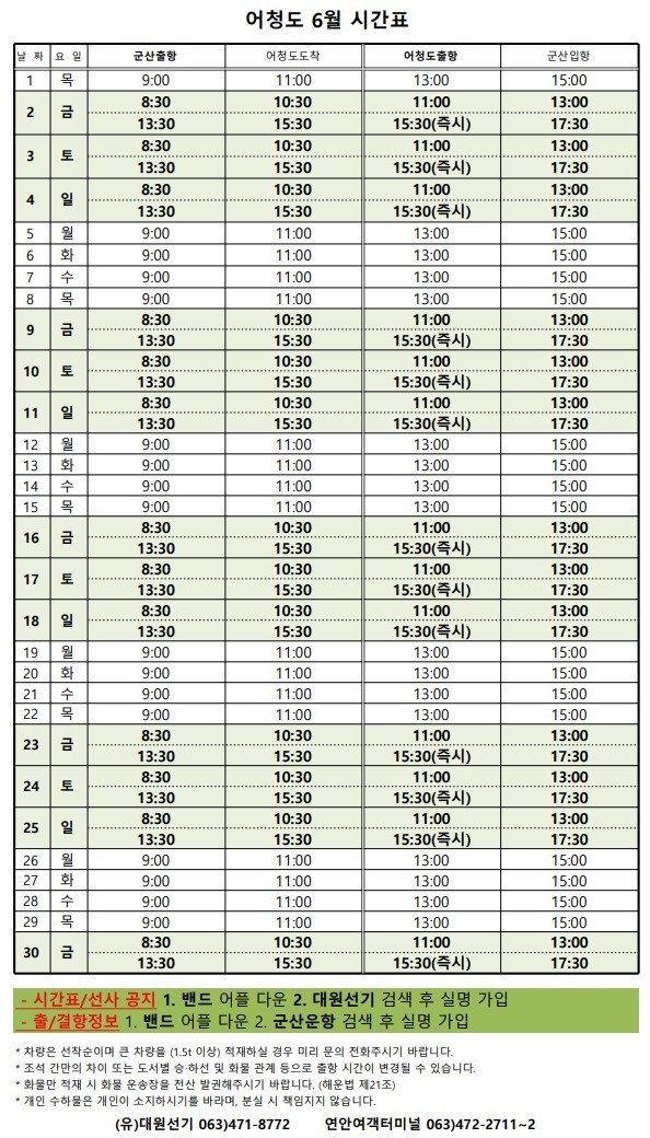 문화관광국 관광진흥과 에서 제작한 여객선 시간표 저작물은 "공공누리" 출처표시-상업적 이용금지-변경금지 조건에 따라 이용 할 수 있습니다.