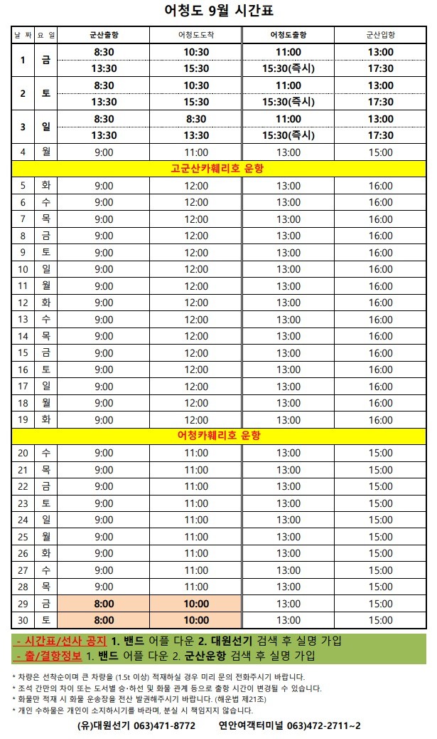 관리도 9월 여객시간표 알림