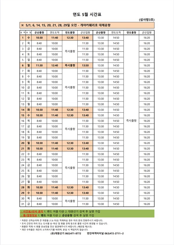 문화관광국 관광진흥과 에서 제작한 여객선 시간표 저작물은 "공공누리" 출처표시-상업적 이용금지-변경금지 조건에 따라 이용 할 수 있습니다.