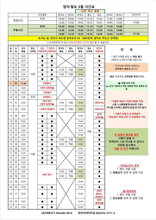 문화관광국 관광진흥과 에서 제작한 여객선 시간표 저작물은 "공공누리" 출처표시-상업적 이용금지-변경금지 조건에 따라 이용 할 수 있습니다.