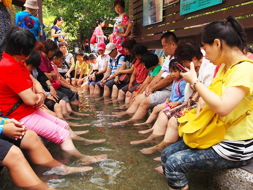 꾸관(谷關) 온천 구역은 빠시옌산(八仙山)을 그 뒤에, 앞으로는 따쨔(大甲) 계곡이 흐르고, 온천 문화관, 쌰오라이(捎來) 산책로, 쌰오라이 다리, 꾸관 다리, 족욕 욕조, 천년된 오엽 소나무 등 유명한 명소들이 자리잡고 있습니다. 또한 이곳은 일본 메이지 천황이 꾸꽌 온천을 다녀간 후 ‘아들'을 얻었다 하여, ‘아들 낳는 탕'이라고도 불리우고 있습니다.